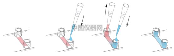 圖二:沖洗換液方法,藍色代表新的無細胞培養基