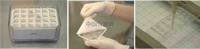 ●打開滅菌包裝,取出ibidi血光生成載玻片 µ-Slide Angiogenesis。